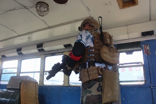 お昼に撮りました集合写真の一部にゴーグル無しの写真がありますが、パワーソースを抜いて安全の管理を確認したうえで撮影を行いました。 |