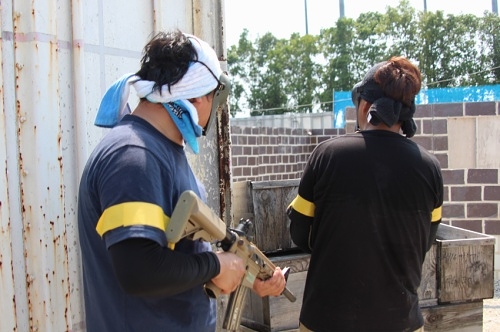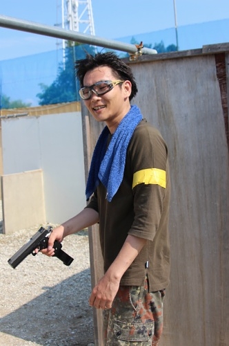 お昼に撮りました集合写真の一部にゴーグル無しの写真がありますが、パワーソースを抜いて安全の管理を確認したうえで撮影を行いました。 |