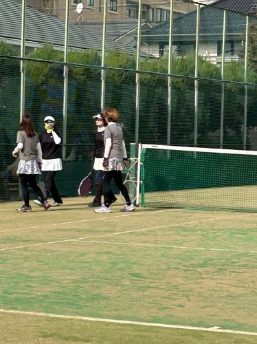 集合時間は少し肌寒かったですが、日中は風もなくポカポカ陽気で汗ばむくらいの絶好のテニス日和になりました。