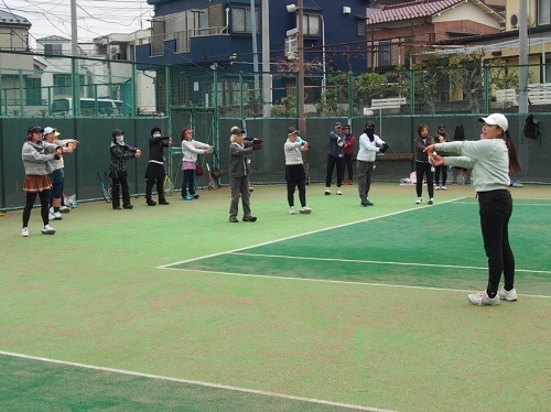 2026年度のレベルアップ練習会がスタートしました。全国レディース・ピンクリボン代表経験者のコーチから教わることができる、毎年人気の練習会です。今年の参加者は179名と昨年よりさらに人数が増えて、どのコートでも熱気につつまれていました。 |